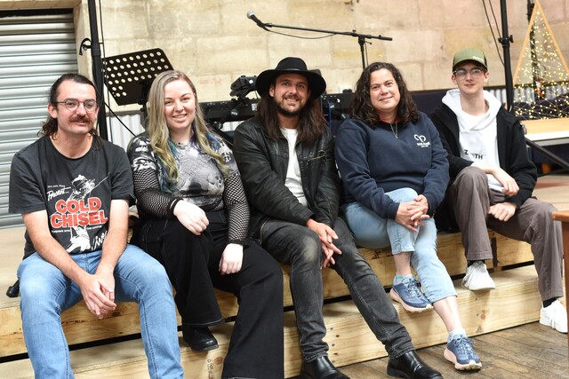 Cameron Pritchard and Nikki Mullan (Skyline Haze), Stephen Esnouf, Kylie Ind and Gabe Strachan celebrated a successful one year of Tunes on Tap. (Melanie Riley: 518407)