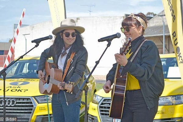 R U OK? ambassadors James Van Cooper and Louise Adams performed at yesterday’s event and will again grace the stage at the R U OK? Rocks Cairns concert next month.