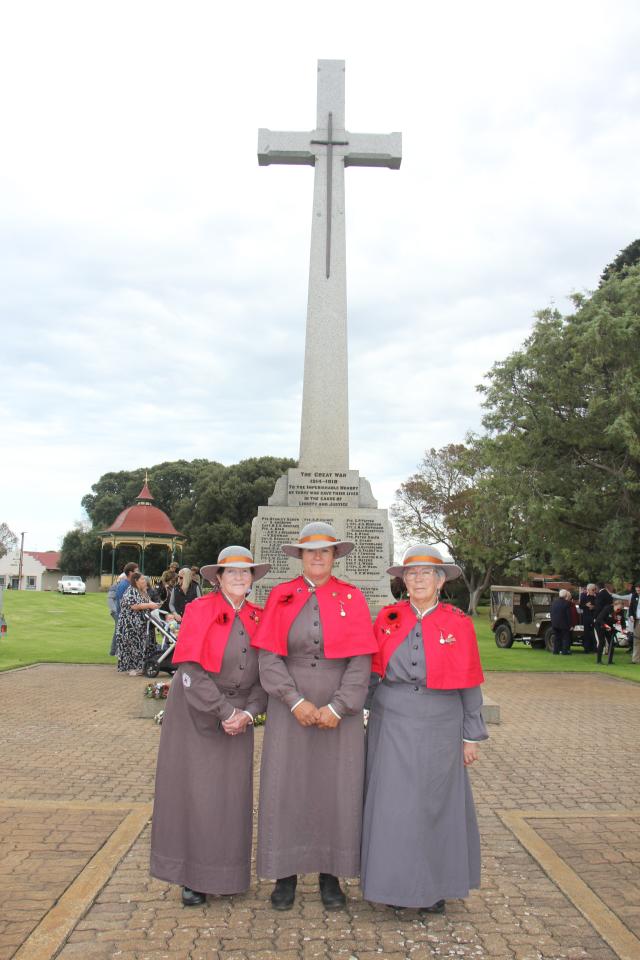 Members of Naracoorte's Troop of the 3rd Light Horse Regiment Peg Slape, Deb Zilm and Wendy Messenger had attended the dawn service at Beachport and the mid-morning service in Millicent.