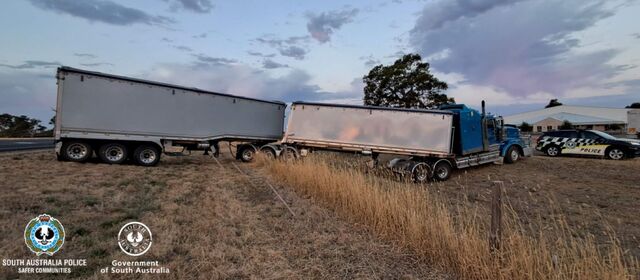 B-double driver blows over