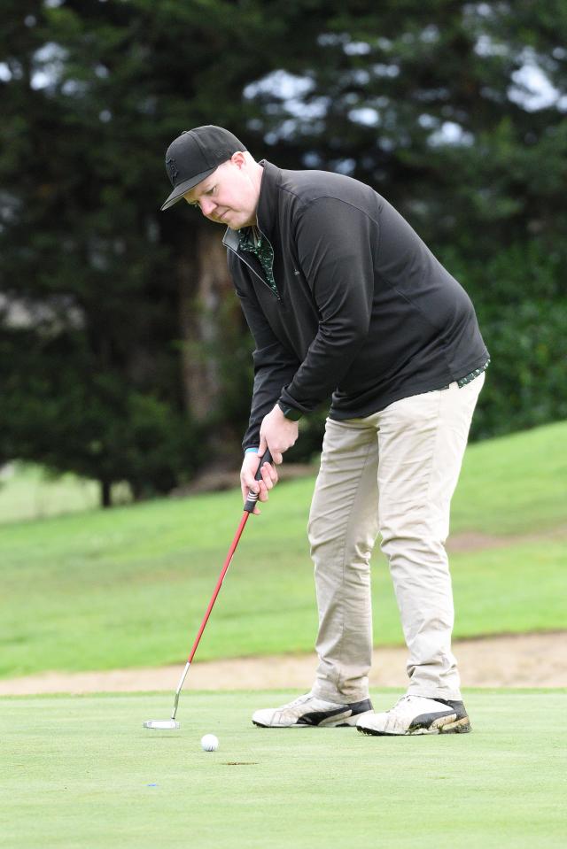GOOD TOUCH: Aaron O'Donnell looks to putt out on his way to a second place in Saturday's B Grade monthly medal round at the Blue Lake Golf Club. Picture: JAMES MYRPHY
