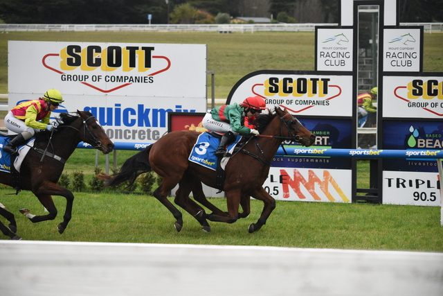 In one of several close finishes at Glenburnie last Friday, the Barry Carraill trained four-year-old gelding Emerald Reward (no. 3) narrowly won his fourth race this current racing season. (Elisabeth Champion 478220)