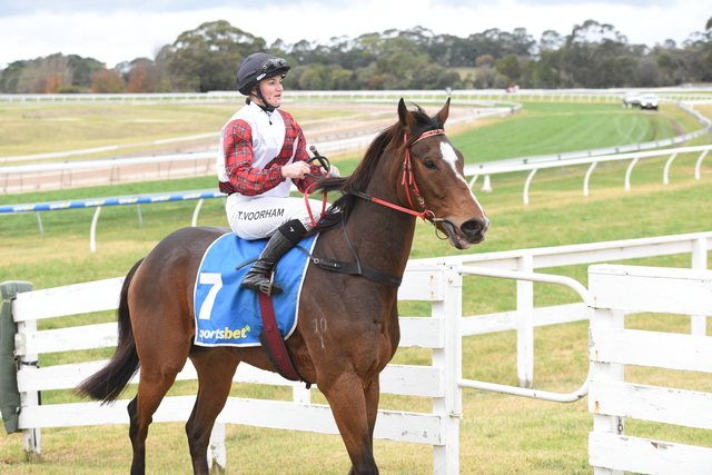 Fresh from winning on Aquaholic (pictured) at Mount Gambier last month, Adelaide jockey Teaghan Voorham then rode a winning double at Bordertown last Friday.