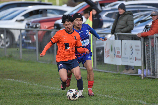 Centrals defender Mereeh Htoo shuts down a run down the wing from Blue Lake's Shar Nay Than. (James Murphy: 500967)