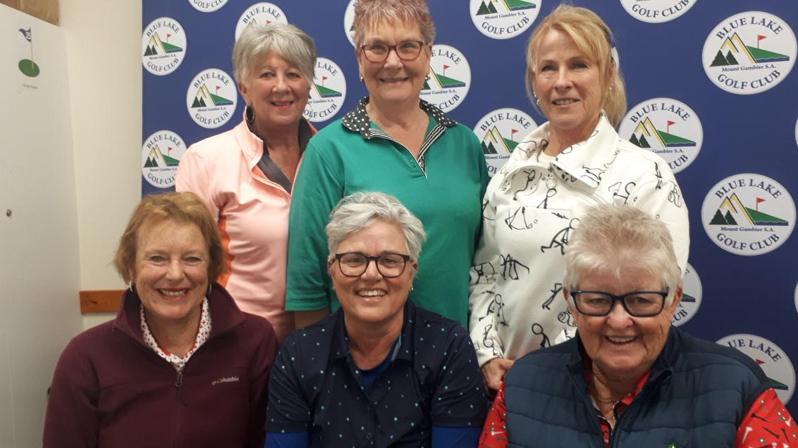 Division 1 third place Helen Stratford (back left), Division 2 winner Beryl Mahoney, Division 1 runner-up runner-up Josie Ashby. Division 2 third place Vivienne Wilson (front left), medal winner Karen Panagopoulos, runner-up Bev Pascoe. (Supplied)
