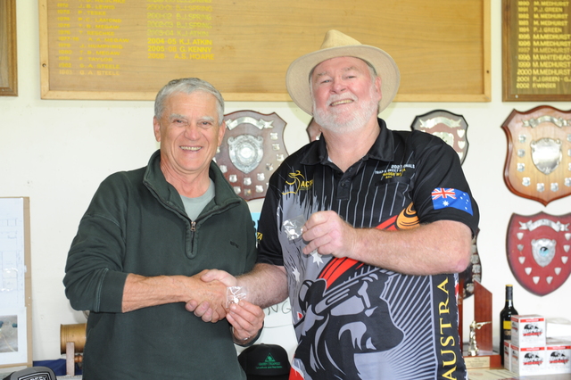 South East Autotrade Highgun – Andrew Hoare congratulates winner Jamie Dunn. (Supplied)