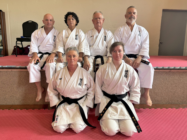 Sensei Mark Kranz (back left), Shihan Alba Kraatz, Kaicho Phil Bates, Sensei Wade von Stanke, Linda Dodds (front left) and Kelly Ryan were in attendance at the recent seminar at Seishikan Karate Mount Gambier. (Submitted)